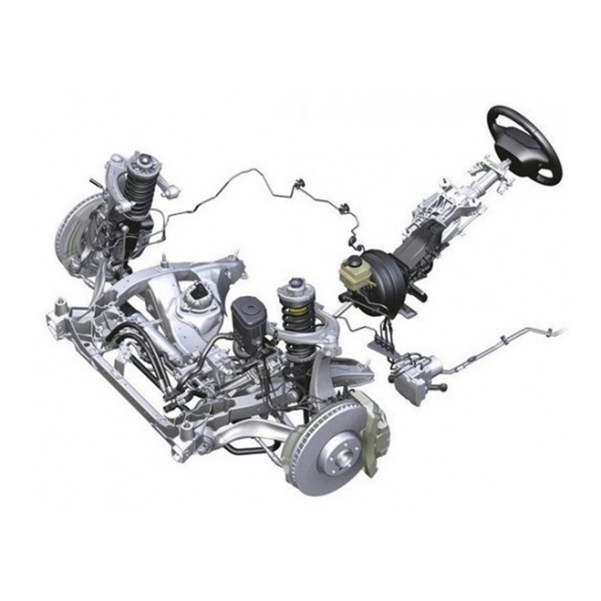 2. Araba yürüme parçaları: arka aks, havalı süspansiyon sistemi, denge bloğu, çelik levha vb.;